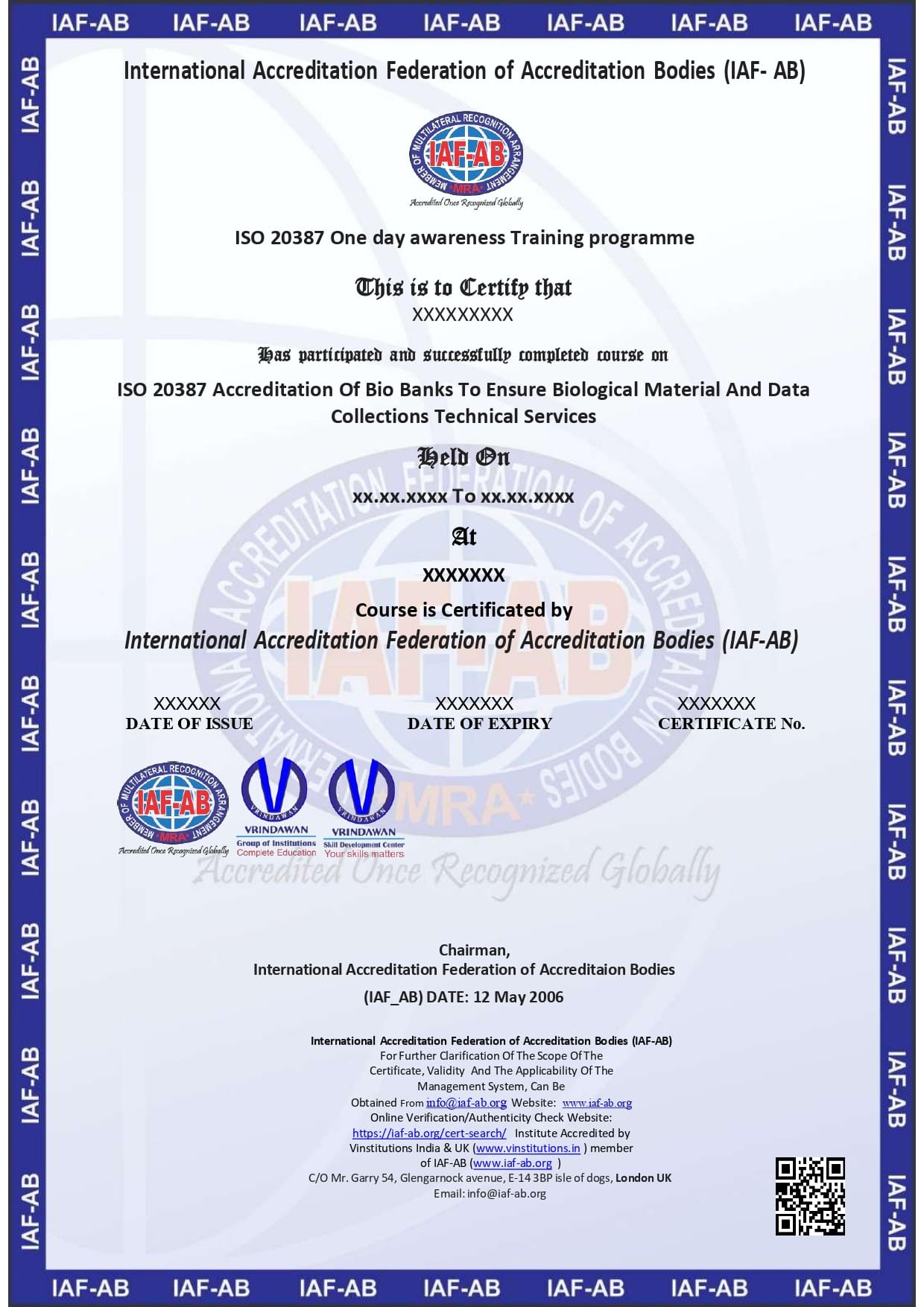 IAF-AB organizing One Day Awareness Programme Classroom & online Training course for ISO 20387 Accreditation Of Bio Banks To Ensure Biological Material And Data Collections Technical Services series management system.
