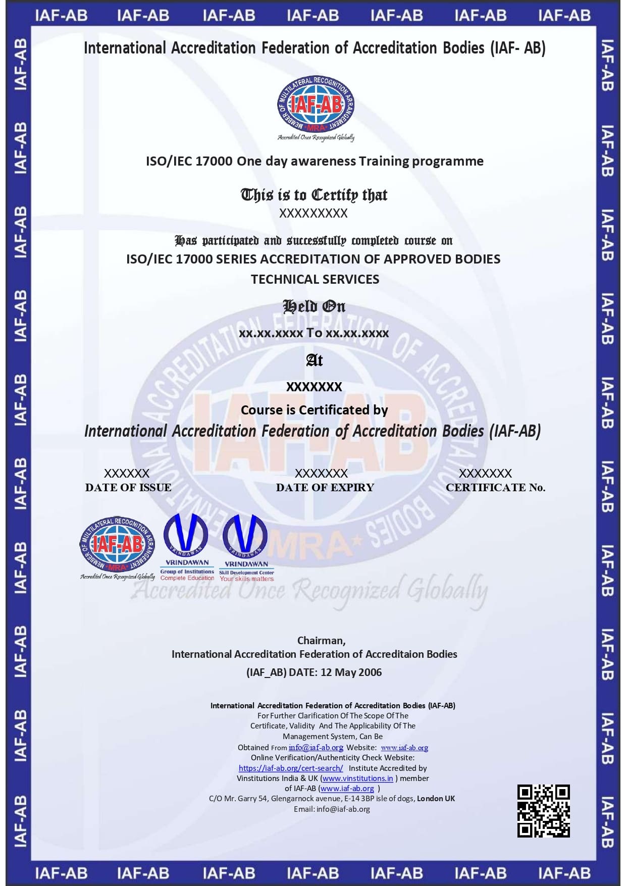 IAF-AB organizing One Day Awareness Programme Classroom & online Training course for ISO/IEC 17000 Series Accreditation Of Approved Bodies Technical Services series management system.